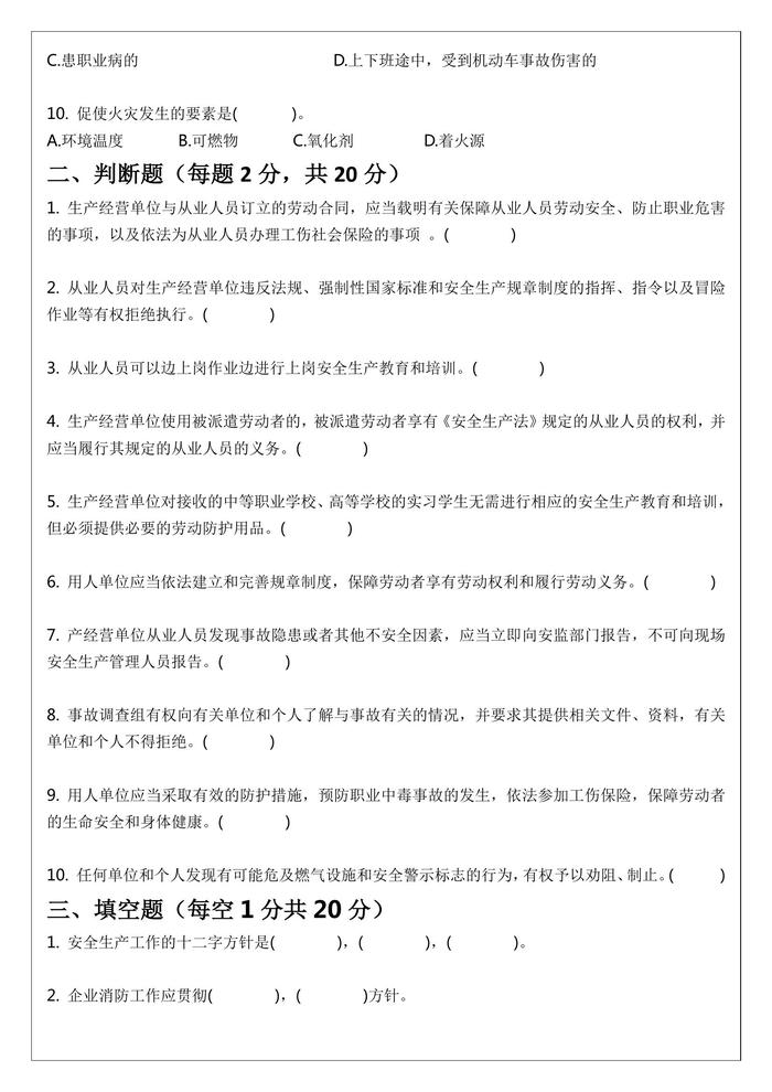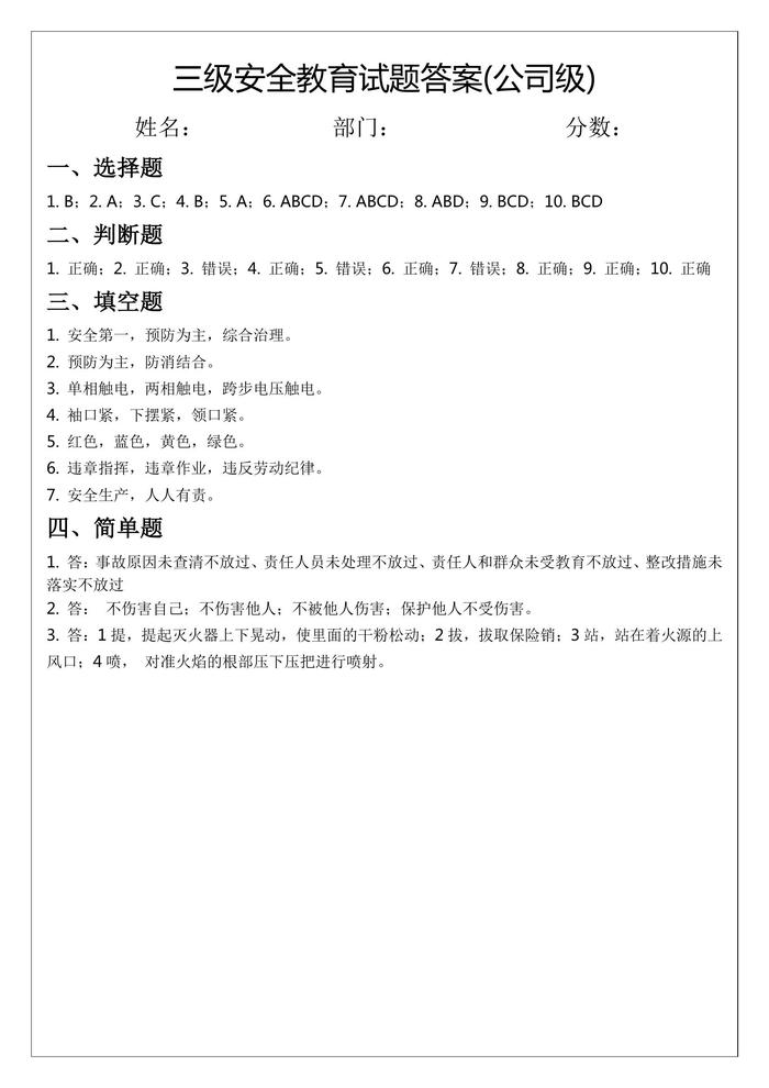 三級安全教育試題及答案(公司級)docx