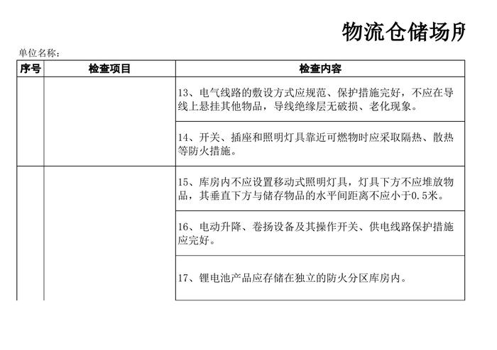 物流倉儲場所消防安全檢查表xls