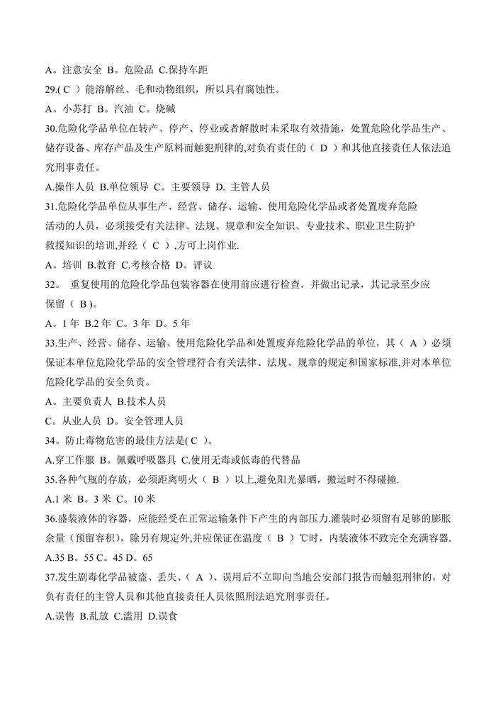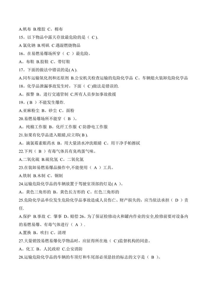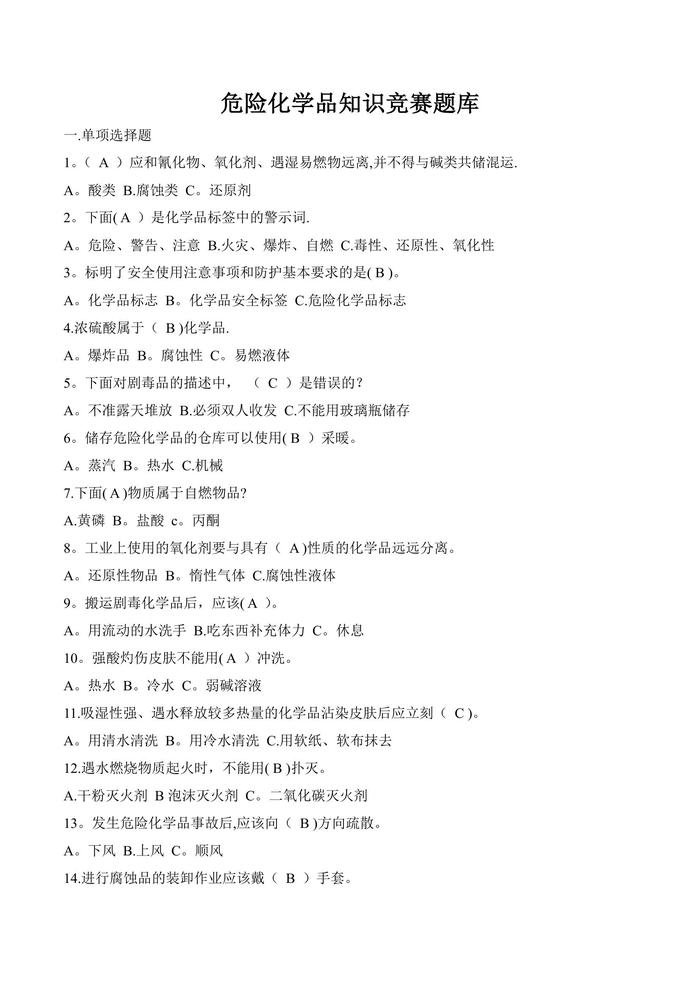 危險化學(xué)品知識競賽題庫doc