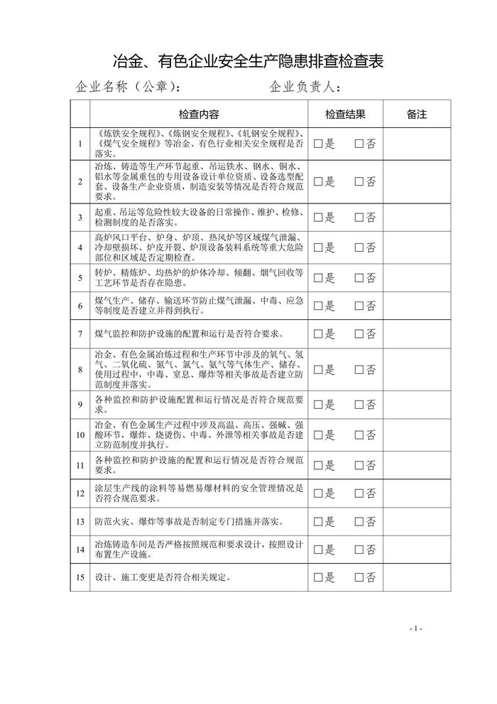 化工企業(yè)安全生產(chǎn)隱患排查檢查表doc