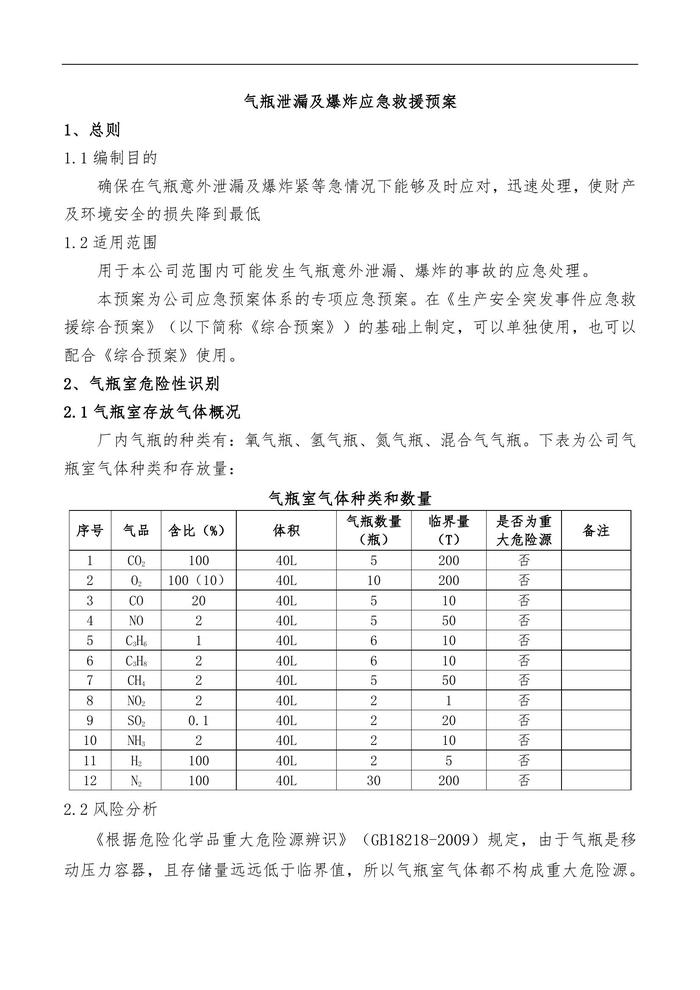 氣瓶泄漏及爆炸應(yīng)急救援預(yù)案docx