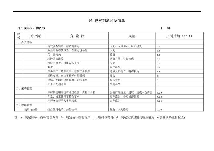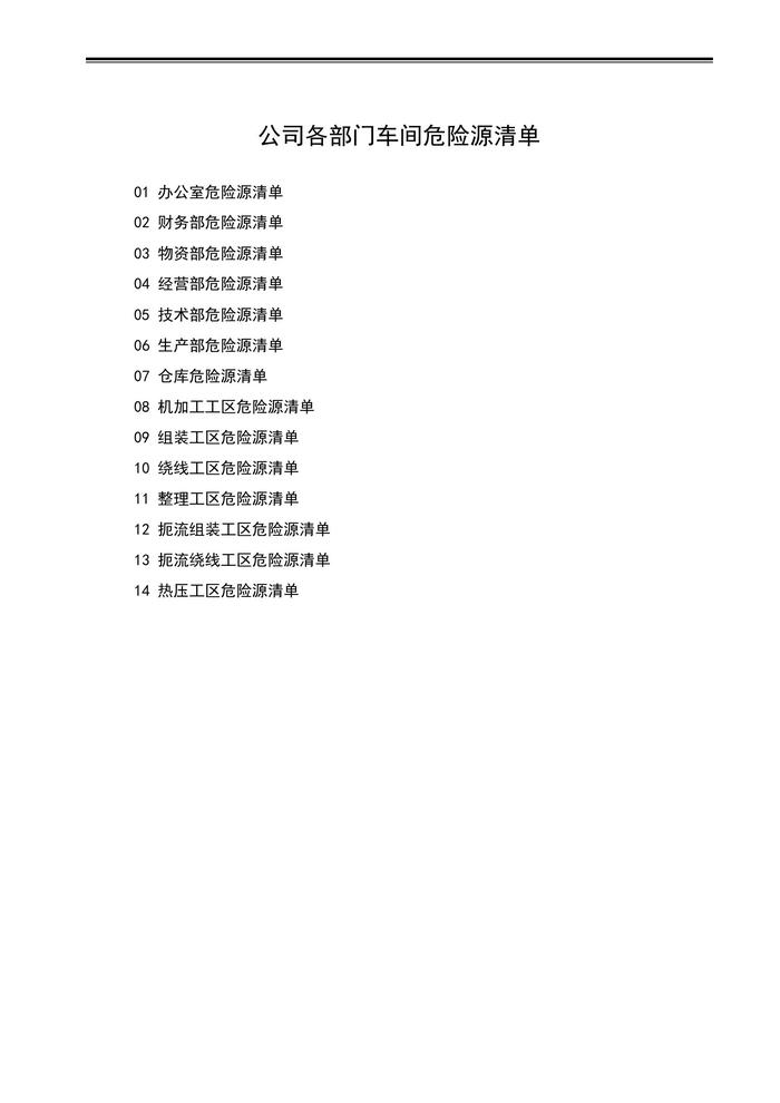 公司各部門車間危險(xiǎn)源清單docx
