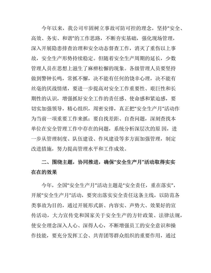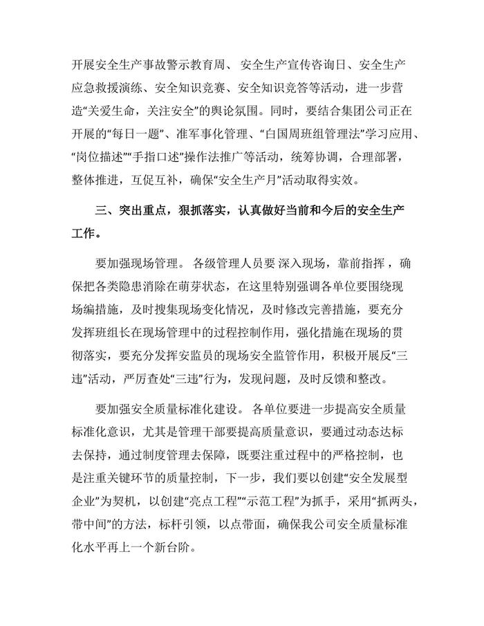 安全生產(chǎn)月啟動(dòng)儀式講話docx