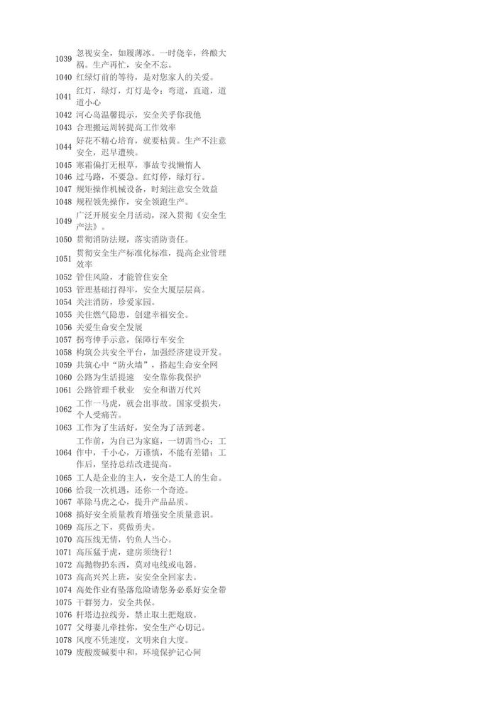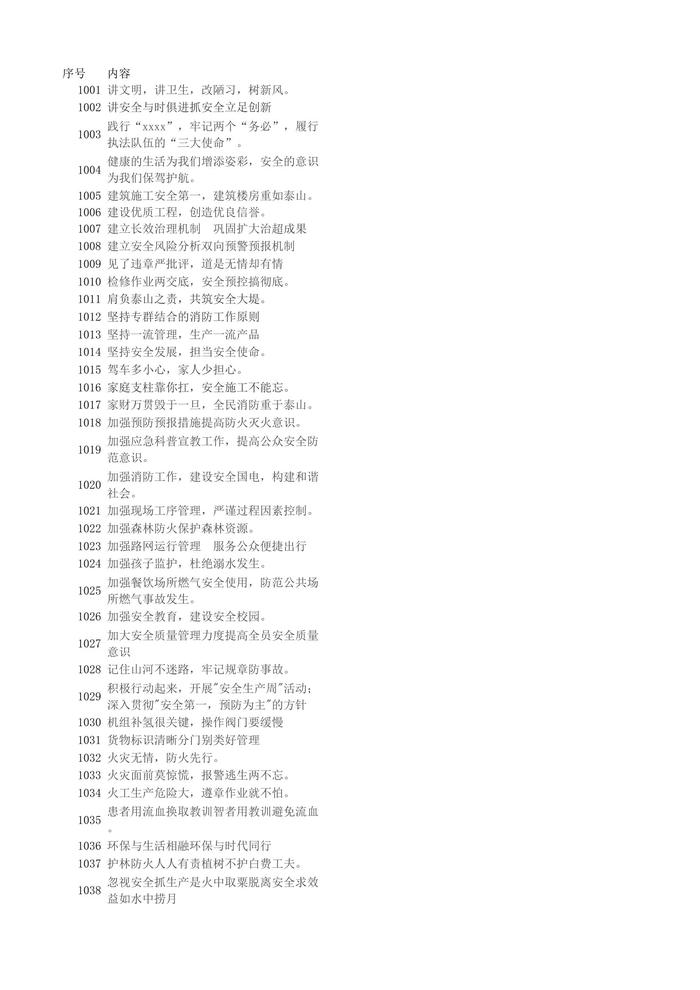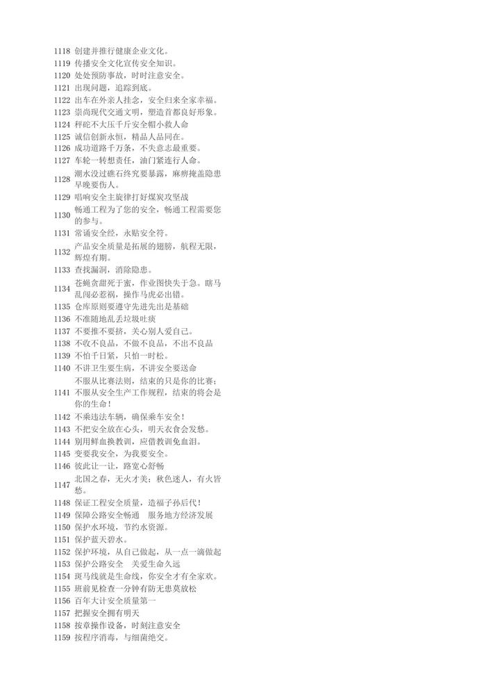 【安全標(biāo)語口號】1001-1200xlsx