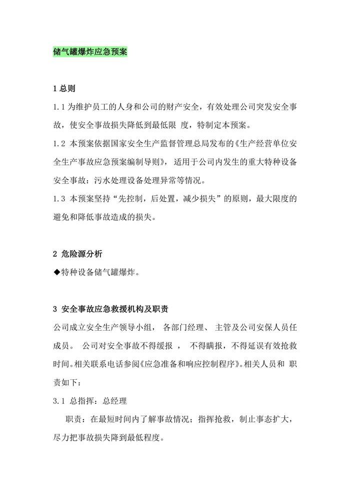 儲(chǔ)氣罐爆炸應(yīng)急預(yù)案doc