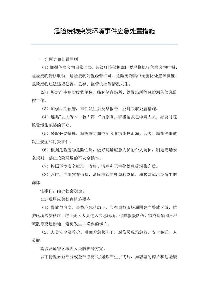 危險廢物突發(fā)環(huán)境事件應(yīng)急處置措施doc