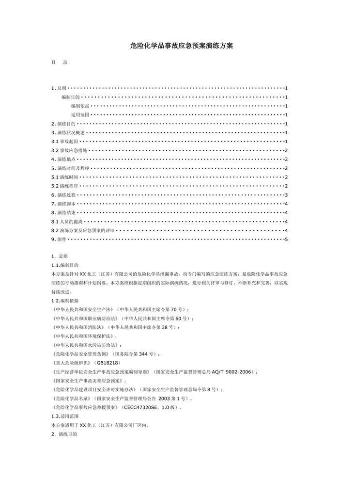 某倉庫危險化學(xué)品事故應(yīng)急預(yù)案演練方案doc