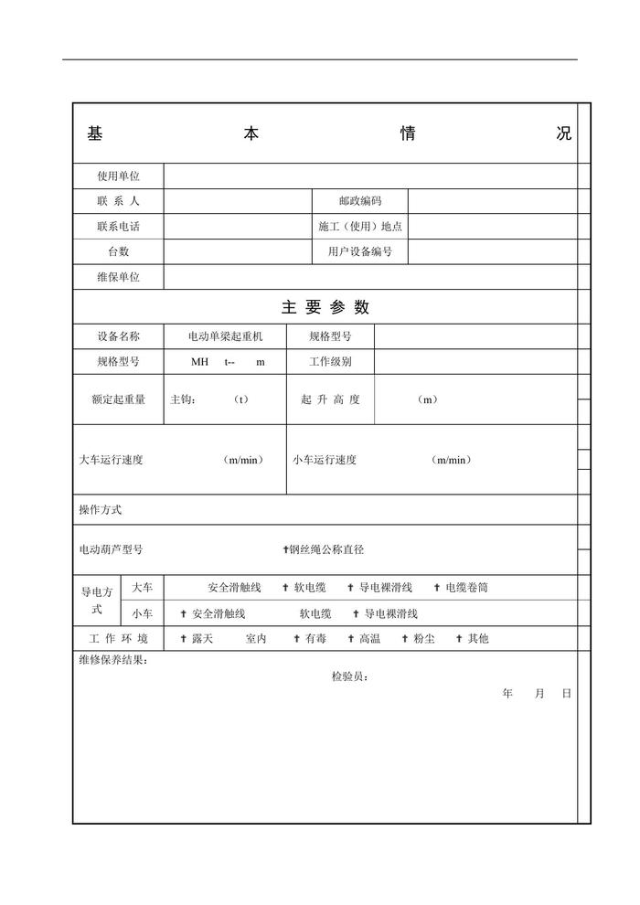 起重機(jī)維修保養(yǎng)內(nèi)容表格docx