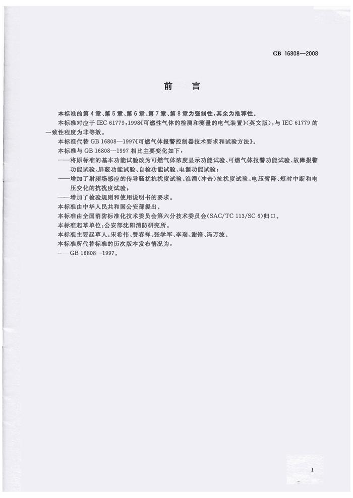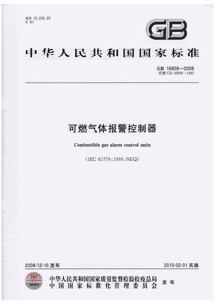 GB 16808-2008可燃氣體報警控制器pdf
