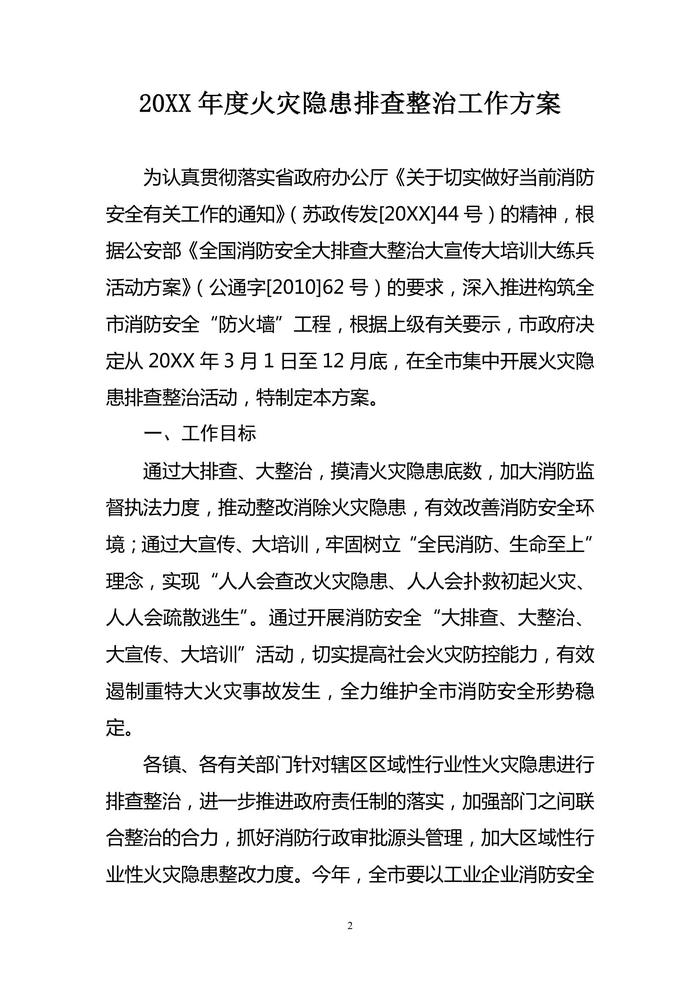 火災(zāi)隱患排查整治工作方案doc