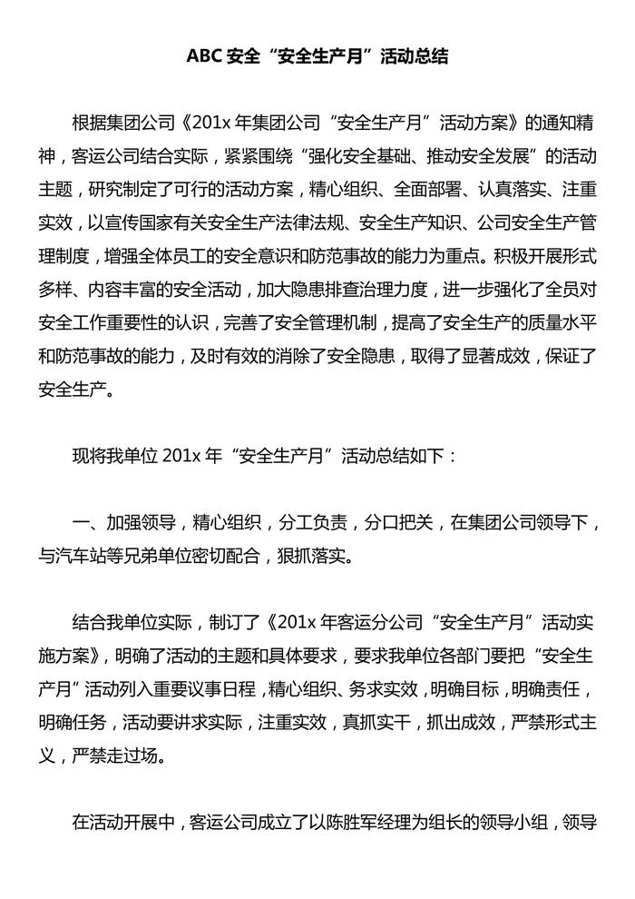 安全生產(chǎn)月總結(jié)精華范本13docx