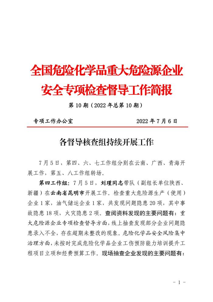 全國危險化學(xué)品重大危險源企業(yè)專項檢查督導(dǎo)工作簡報(第10期)pdf