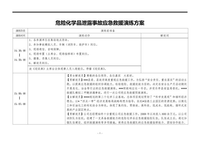 危險(xiǎn)化學(xué)品泄露事故應(yīng)急救援演練方案演練腳本doc