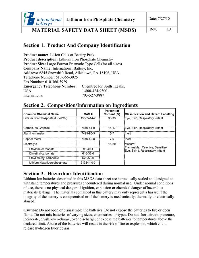 磷酸鐵鋰電池MSDSpdf