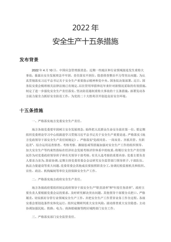 2022年安全生產(chǎn)十五條措施強化安全生產(chǎn)責(zé)任落實堅決防范遏制重特大事故docx