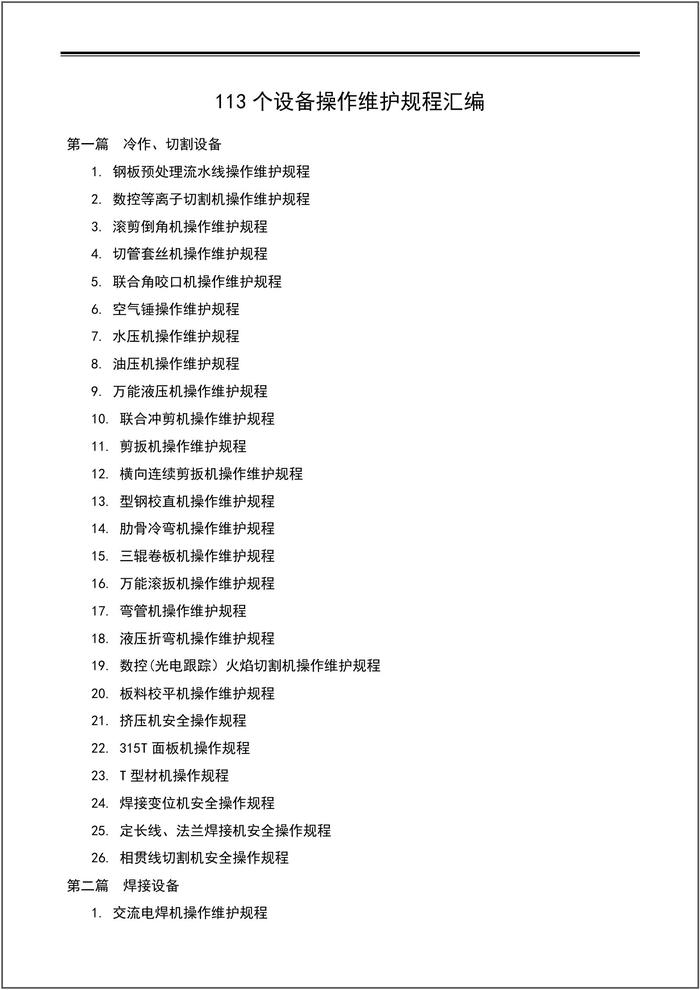 113個設備操作維護規(guī)程匯編docx