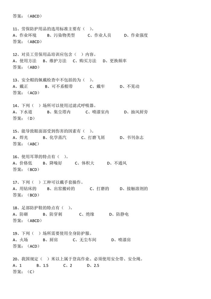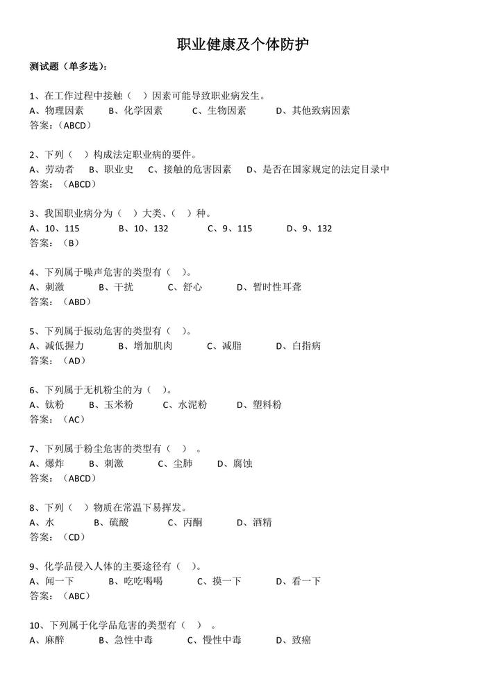 職業(yè)健康及個(gè)體防護(hù)測(cè)試題docx