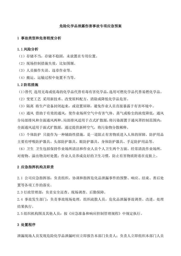 危險(xiǎn)化學(xué)品泄露傷害事故專項(xiàng)應(yīng)急預(yù)案docx