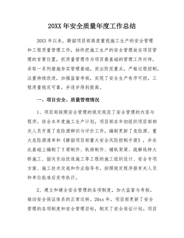 20XX年度安全質(zhì)量年度工作總結(jié)docx