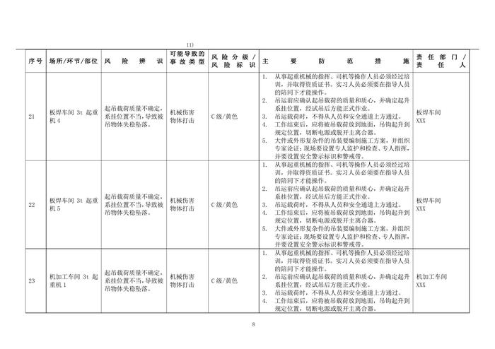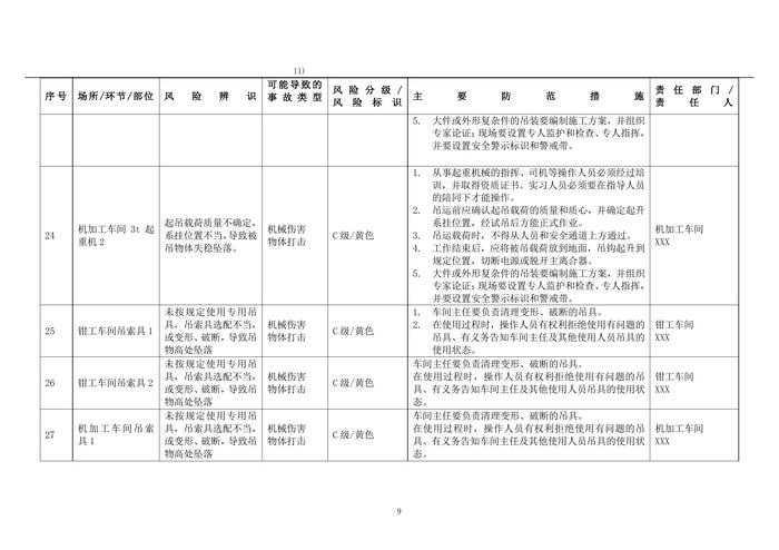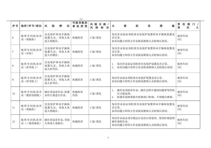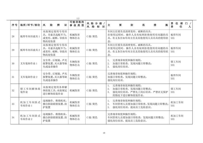機械行業(yè)安全風險辨識與分級管控清單doc