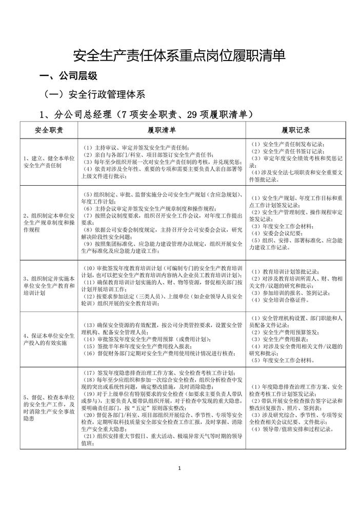 2022安全生產(chǎn)重點(diǎn)崗位履職清單(15頁)docx