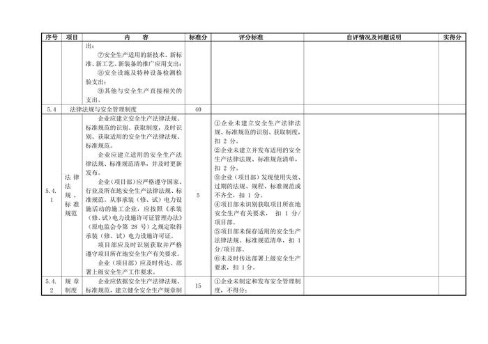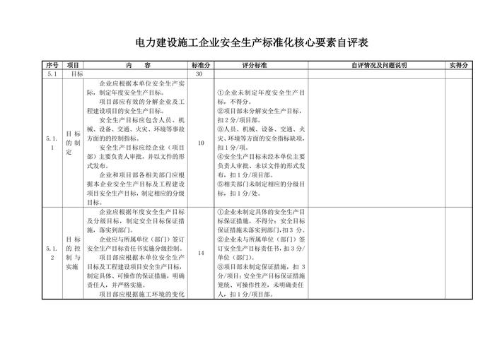 電力建設施工企業(yè)安全生產標準化核心要素自評表doc
