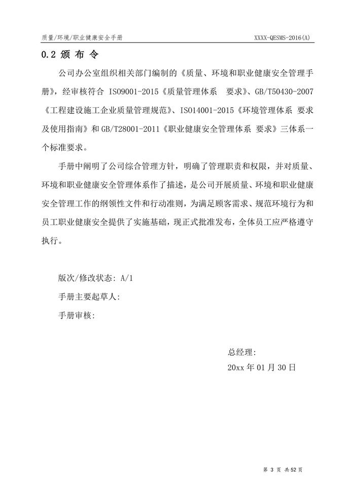 企業(yè)安全健康環(huán)保三體系綜合管理手冊doc