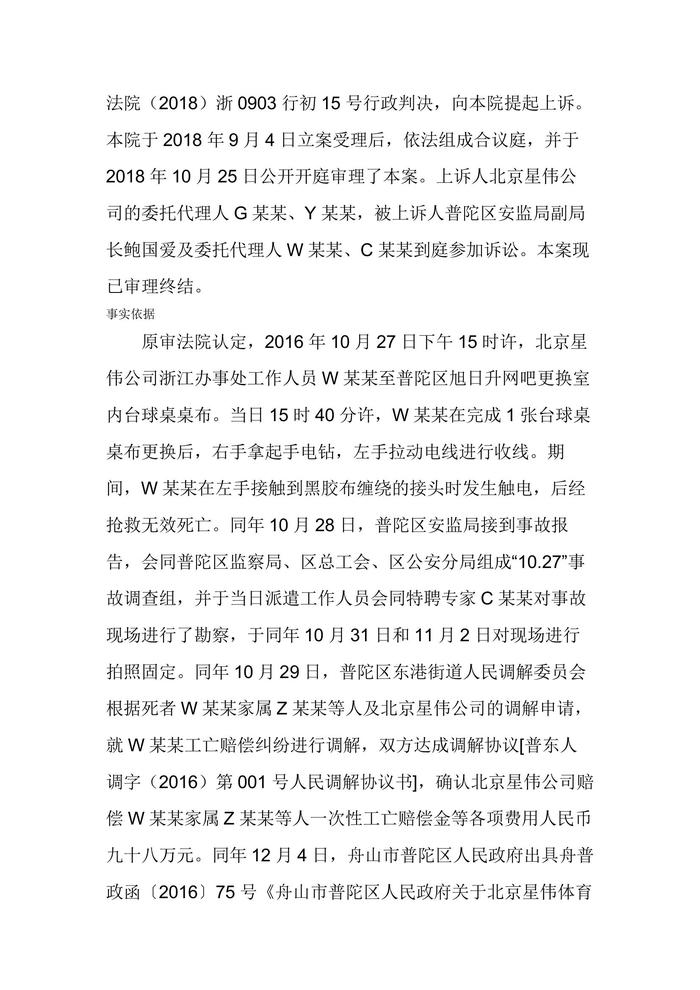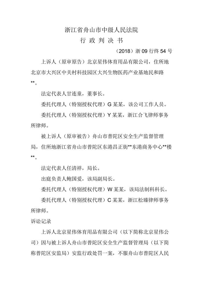 二審北京星偉體育用品有限公司舟山市普陀區(qū)安全生產監(jiān)督管理局行政判決書docx