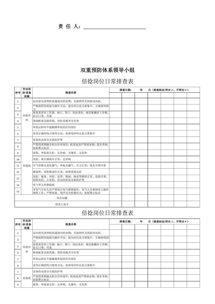 倍捻崗位日常排查表doc