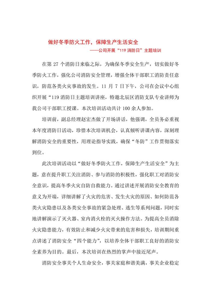 做好冬季防火工作,保障生產(chǎn)生活安全doc