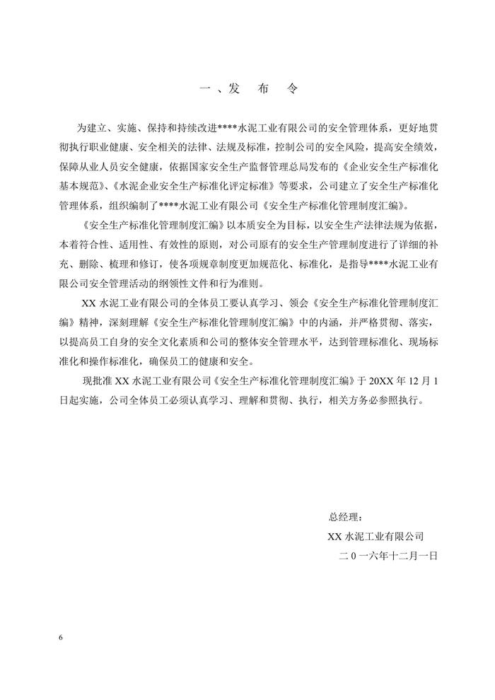 水泥企業(yè)安全生產(chǎn)標(biāo)準(zhǔn)化管理制度匯編doc