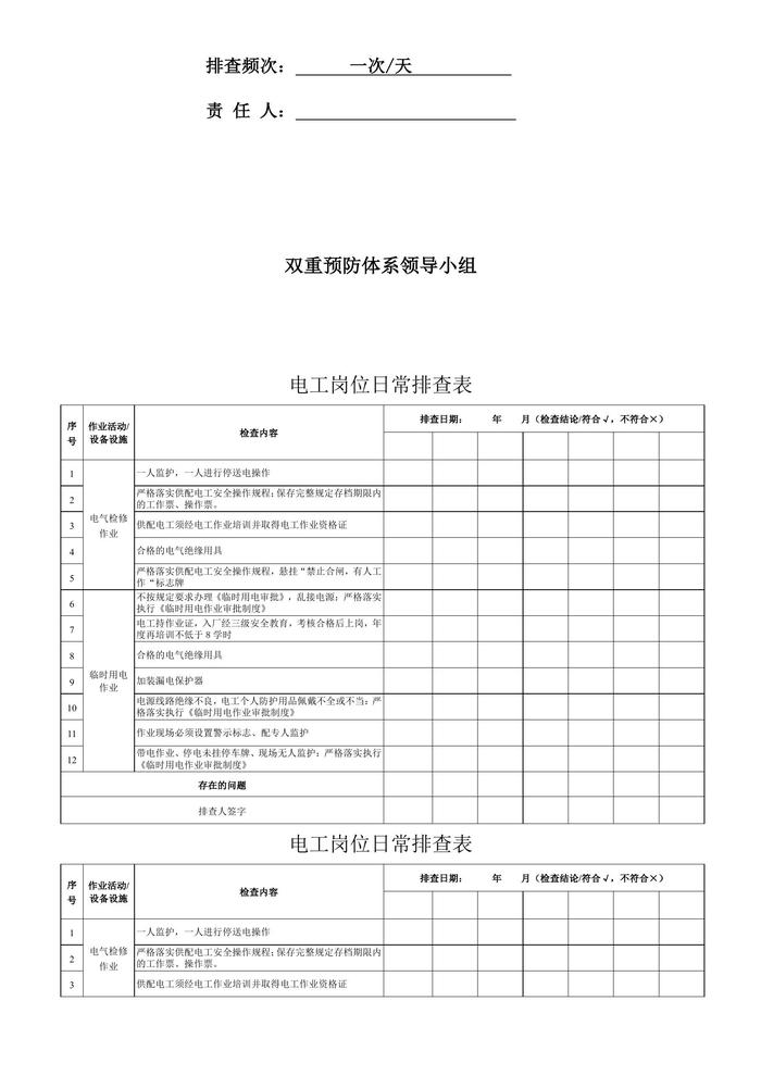 電工崗位日常排查表doc