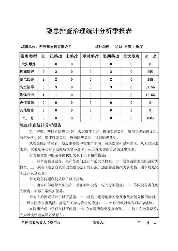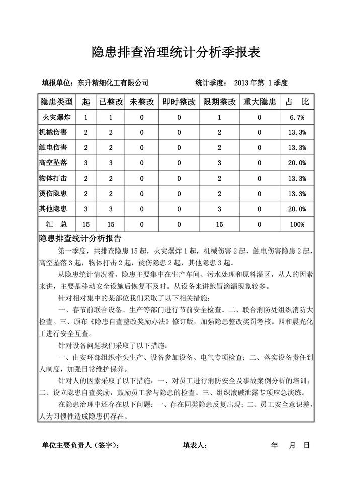 第一季度隱患排查治理統(tǒng)計(jì)分析季報(bào)表doc