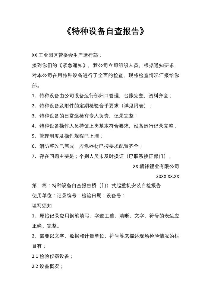 特種設(shè)備自查報(bào)告docx