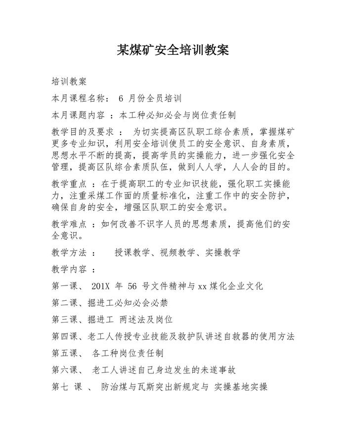 某煤礦安全培訓(xùn)教案(20頁(yè))docx