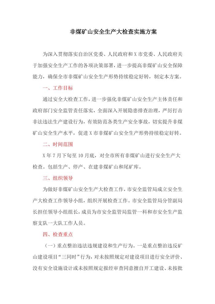 非煤礦山安全生產(chǎn)大檢查實(shí)施方案doc