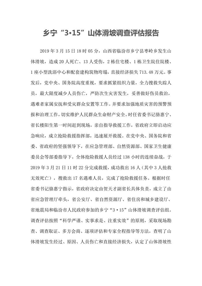 鄉(xiāng)寧“3·15”山體滑坡調(diào)查評(píng)估報(bào)告doc