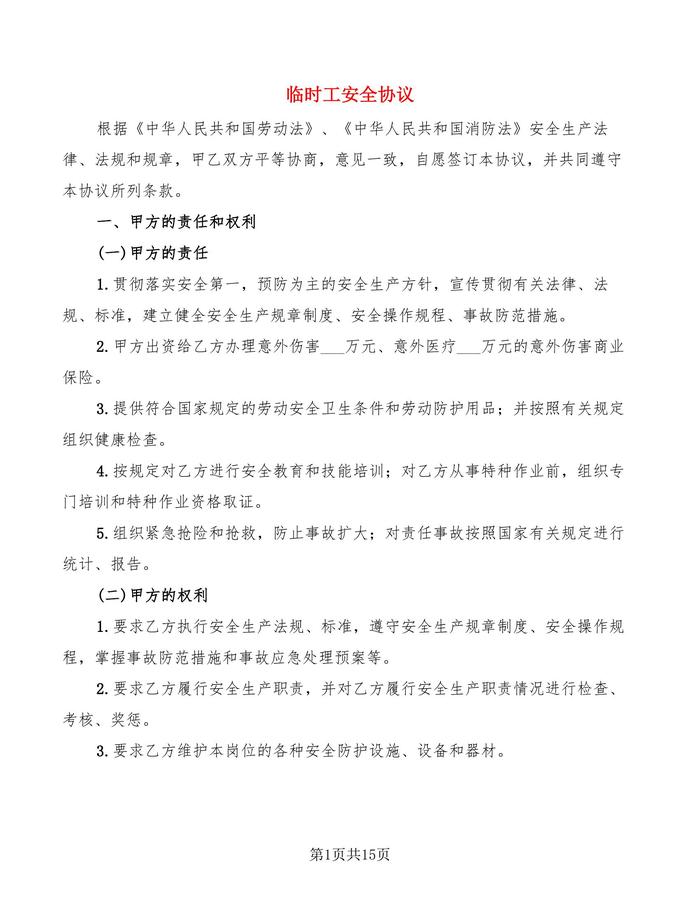 臨時工安全協(xié)議7篇doc