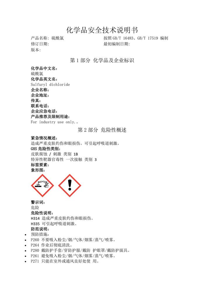 硫酰氯化學(xué)品安全技術(shù)說明書docx