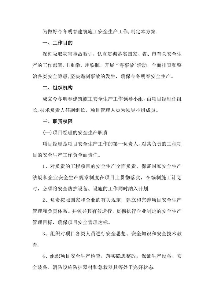 今冬明春安全生產方案doc
