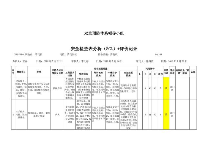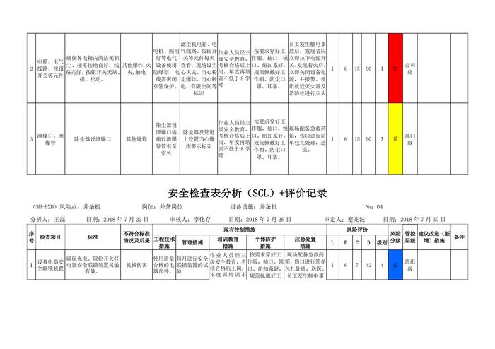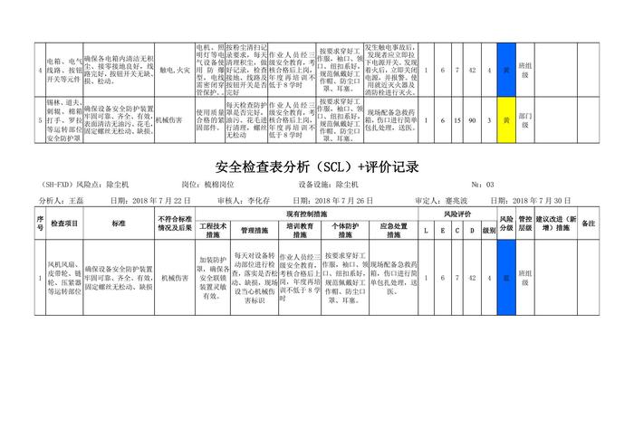 工作危害分析評價記錄+安全檢查表分析評價記錄doc