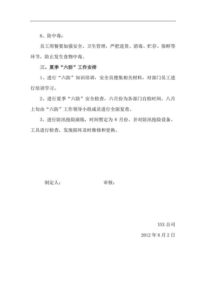 夏季“六防”工作方案doc