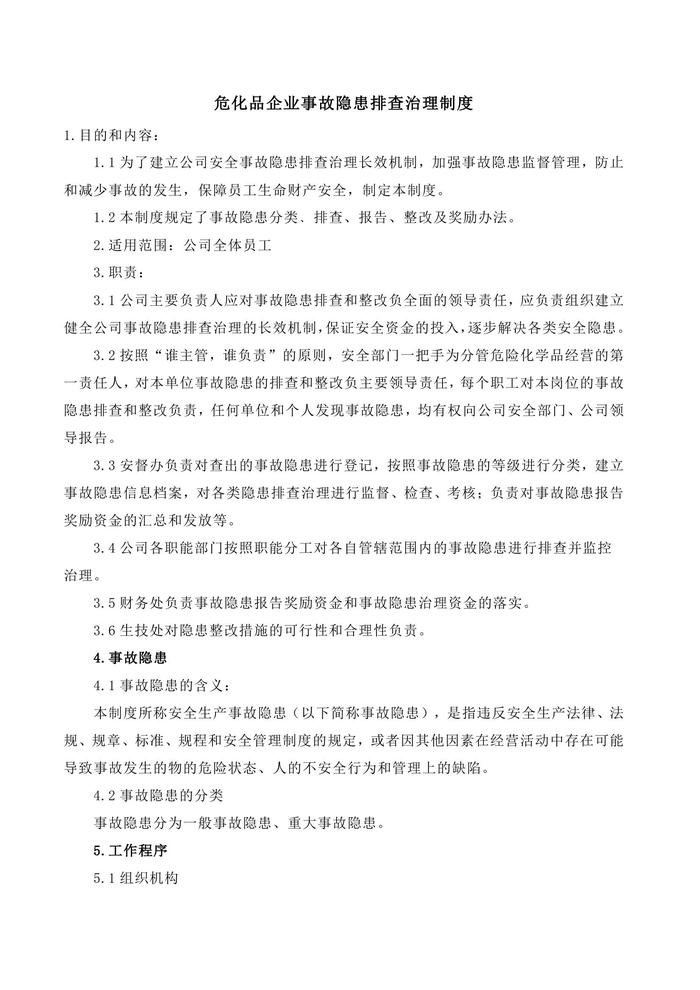 危險(xiǎn)化學(xué)品事故隱患排查治理制度doc
