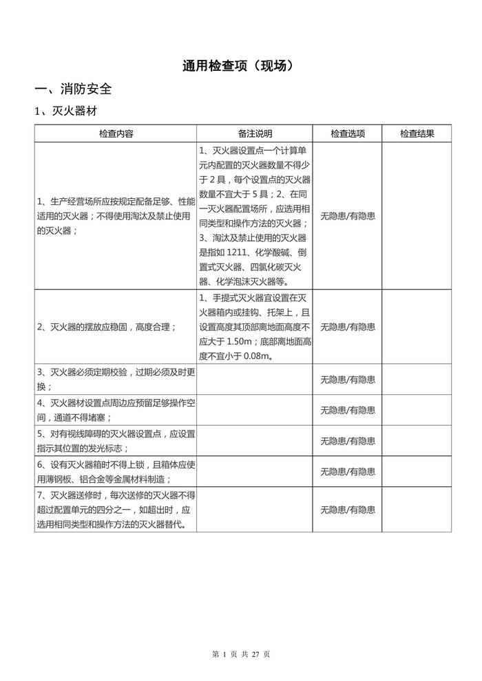 安全生產(chǎn)檢查表匯編(27頁)docx