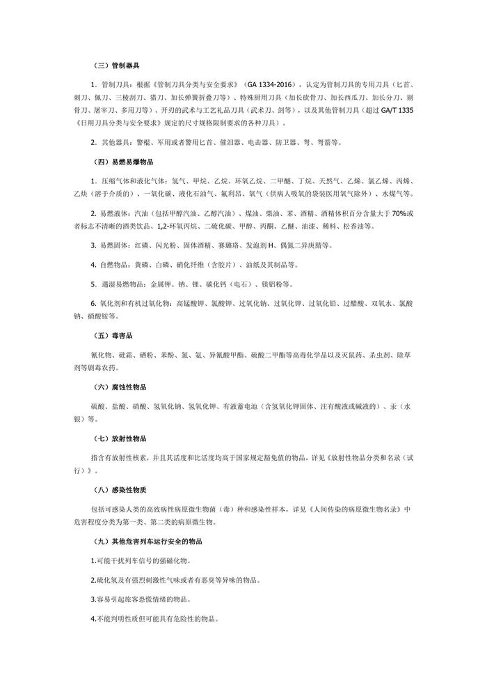 2022年7月施行《鐵路旅客禁止、限制攜帶和托運(yùn)物品目錄》docx