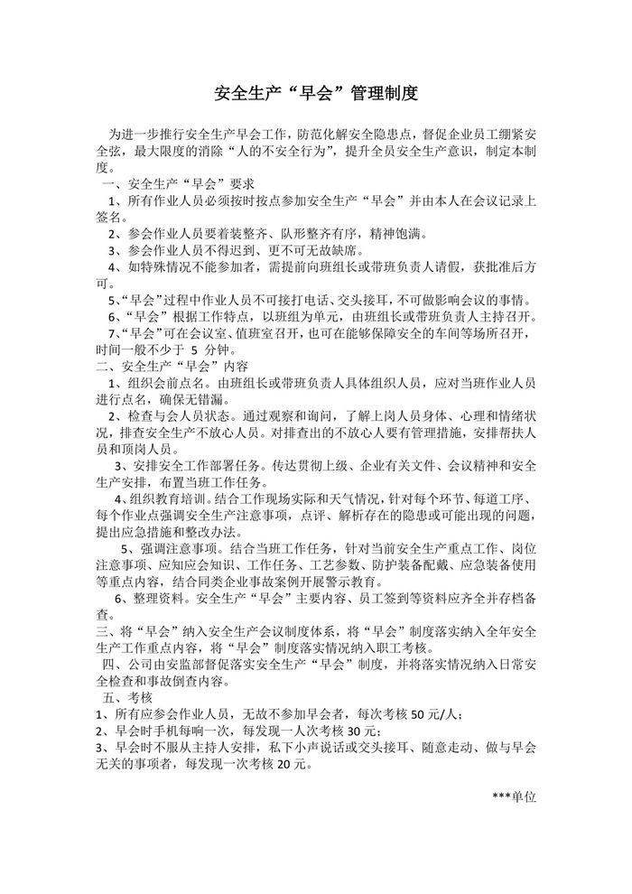 安全生產(chǎn)“早會(huì)”管理制度docx
