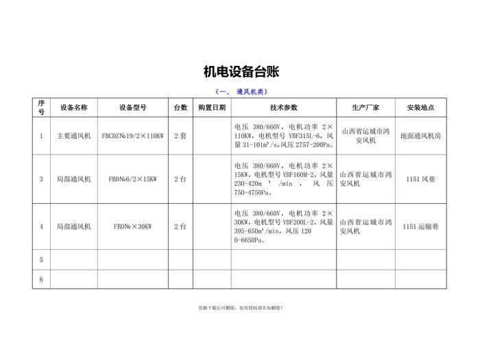 機(jī)電設(shè)備臺(tái)賬doc