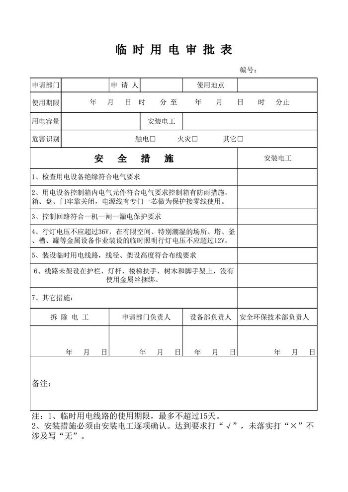 臨時(shí)用電審批表xls