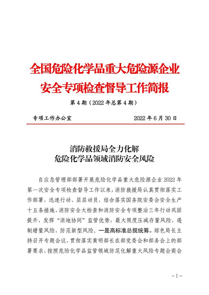 全國危險(xiǎn)化學(xué)品重大危險(xiǎn)源企業(yè)專項(xiàng)檢查督導(dǎo)工作簡報(bào)(第4期)(1)pdf