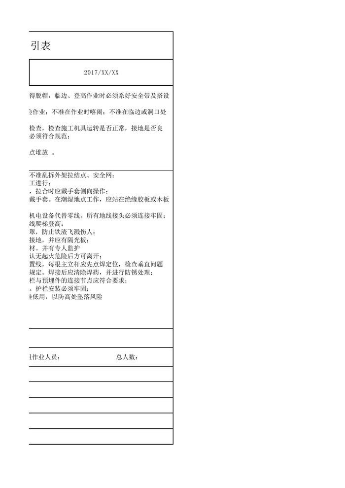 欄桿班組安全生產(chǎn)指引表xlsx